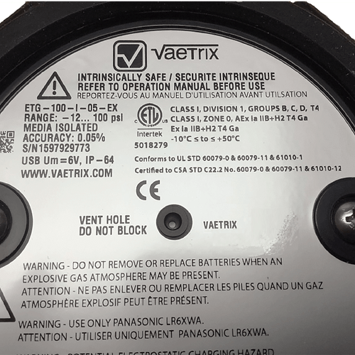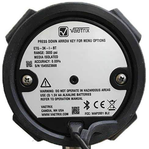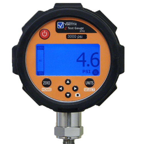 Vaetrix ETG utilizes the latest digital technology to accurately solve pressure measurement applications. All MEMS pressure sensors are fully temperature compensated throughout the operating range. The easy to use interface and intuitive menu structure is the best in the industry. There are no encrypted symbols or abbreviations, just press the arrow keys to navigate the menu and select your choice.