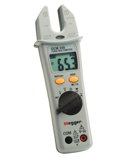 The Megger DCM330 fork multimeter is a convenient, compact instrument designed to measure AC current up to 200 A, as well as perform all the functions of a basic multimeter.